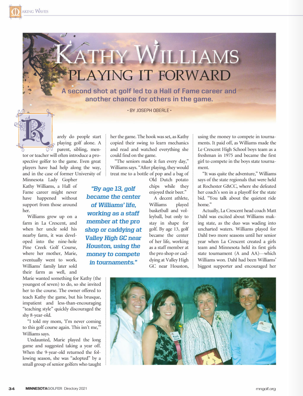 If you are interested in getting into the game, please call: KathyWilliamsGolf