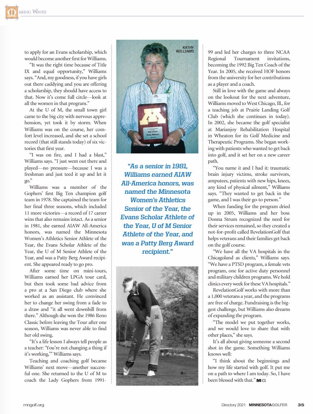 If you love the game of golf and want to improve your performance or are a beginner looking to get started, Kathy Williams is the teacher for you. From her wealth of knowledge and expertise to her personable demeanor, Kathy’s passion for golf is evident in all she does.